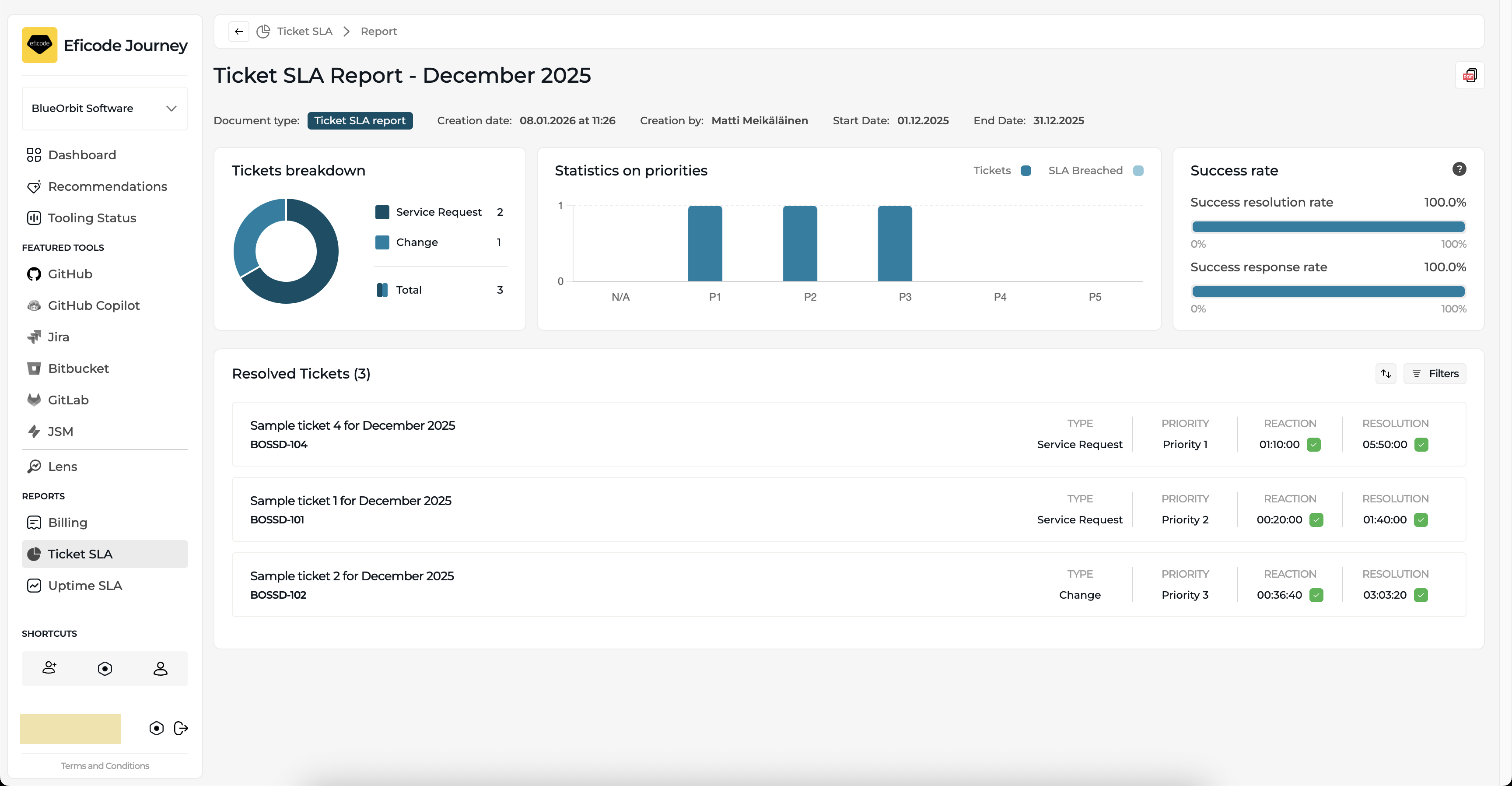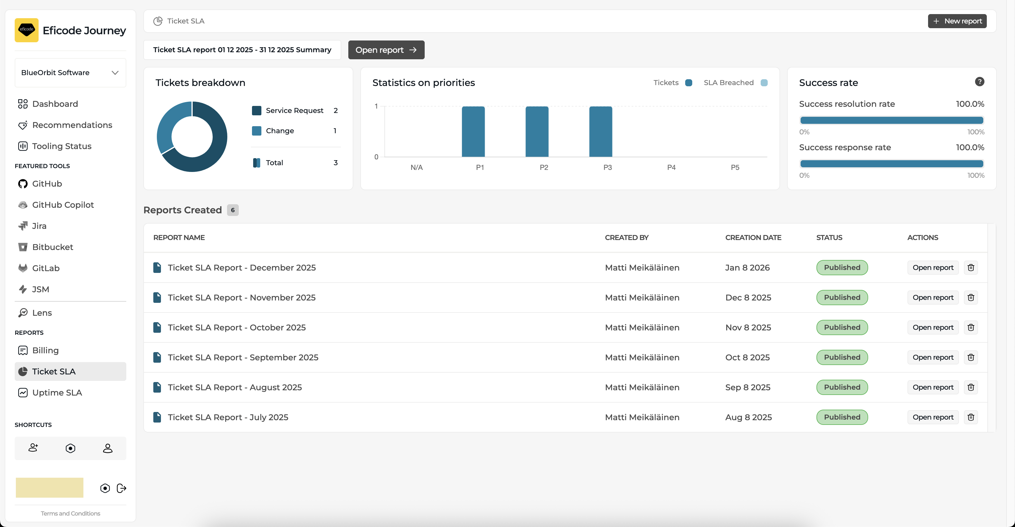 - Customer value: Thorough, credible monthly reporting on how Eficode met the contract’s ticket SLA.
